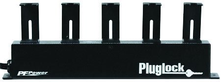 The PLUGLOCK-PFP circuit-breaker protected locking outlet strip provides enough wall wart spacing for five bulky transformers and can be safely mounted out of sight, in the rear of your rack.